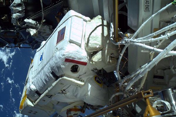 The success of today's spacewalk was not lost on the NASA and international astronauts, assigned and unassigned, who undoubtedly watched, enviously, from the ground. "Working w/cable on a spacewalk…a very challenging/exhausting task," exulted Astronaut Candidate (ASCAN) Anne McClain. "These guys laid 340 feet of cables in six hours 41 minutes. Wow!" Fellow astronaut Ricky Arnold—who performed two EVAs on shuttle mission STS-119 in March 2009—welcomed Virts to the spacewalking fraternity, whilst British astronaut Tim Peake noted that "laying cables is tough work on the hands". Nicole Stott, who was selected as an astronaut in the same class as Wilmore and Virts, back in July 2000, paid homage to their class nickname: "Awesome work…Go Bugs!" Other former astronauts and veteran spacewalkers, including Mike Lopez-Alegria and Clay Anderson, also chimed in via Twitter, expressing their fervent wish to have taken part in today's EVA. In response to Anderson's light-hearted plea, Canada's most experienced spacewalker, Dave Williams, tweeted: "If you ever need an EV2, give me a call. I'll be your wingman, anytime!"